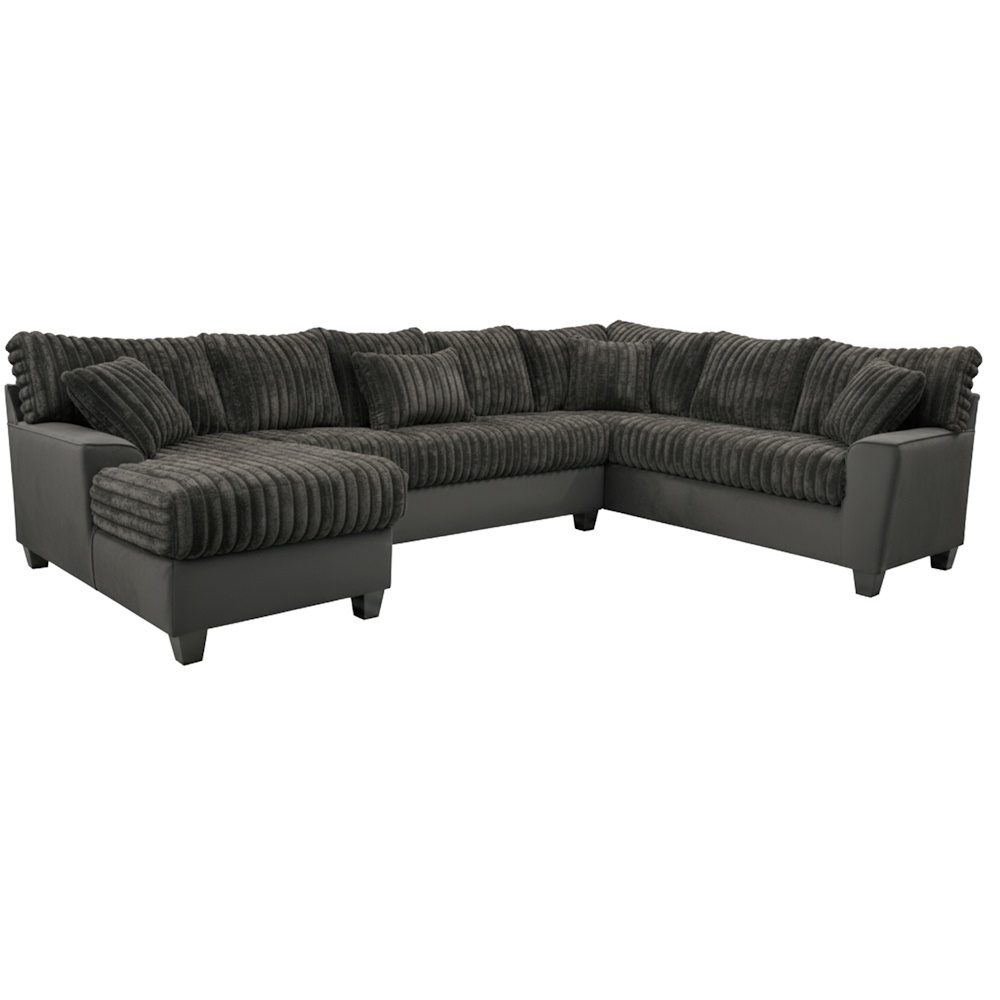 The Midnight Madness Onyx Sectional. The Midnight Madness sectional is covered with thick black corduroy fabric on the seats and back. The Midnight Madness Onyx is available with the chaise in either right or left side.